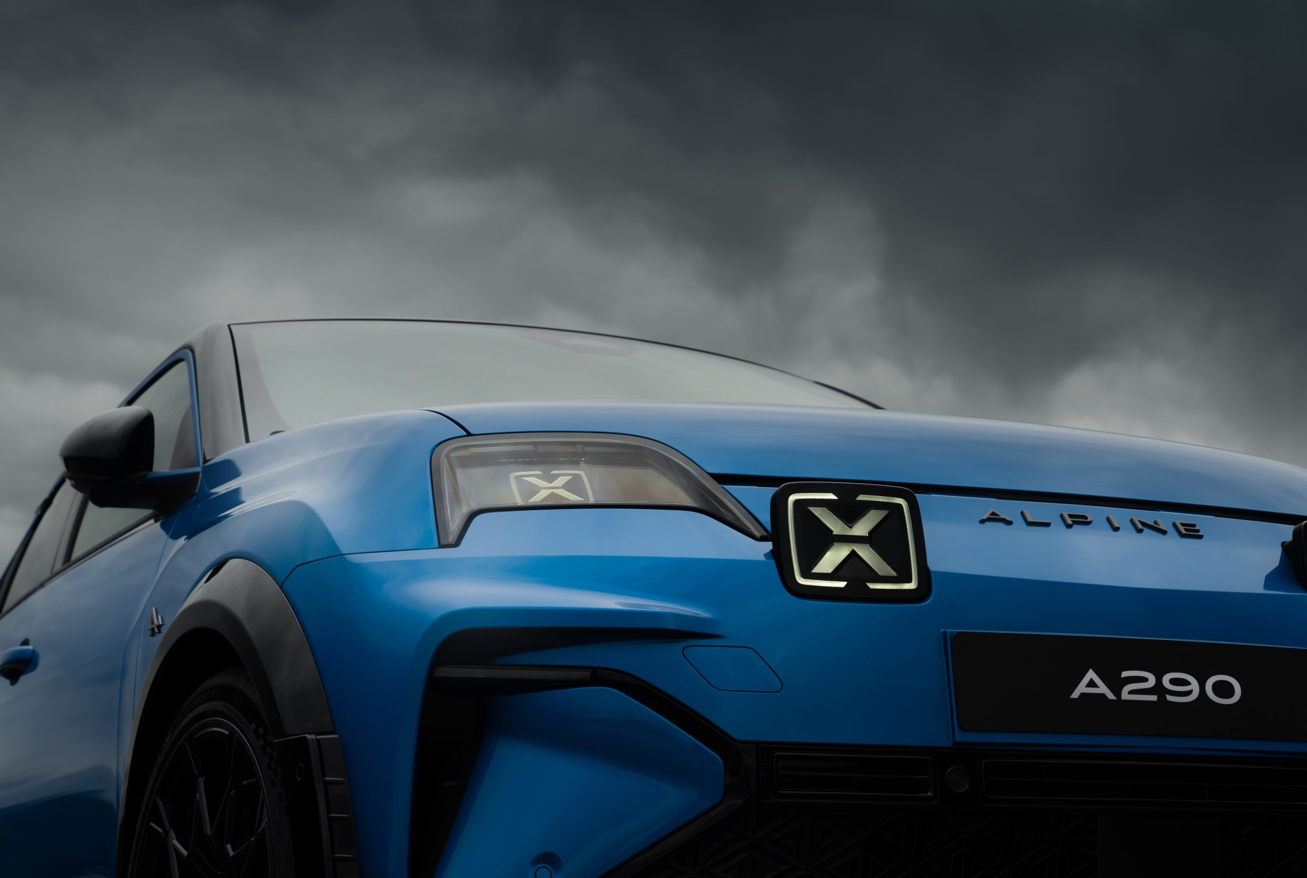 Geniş çamurluklar, onları vurgulayan gövde rengi kenarlara sahip yan marşpiyeler, alüminyum veya belirli versiyonlarda standart olarak anodize mavi tavan kenarları ve ince düşünülmüş diğer birçok detay; A290’ın dış tasarımına güçlü bir ifade kazandırıyor. Ön kısımda Alpine yazısı yer alırken; özel spor tamponda tipik bir kar tanesi motifi bulunuyor.