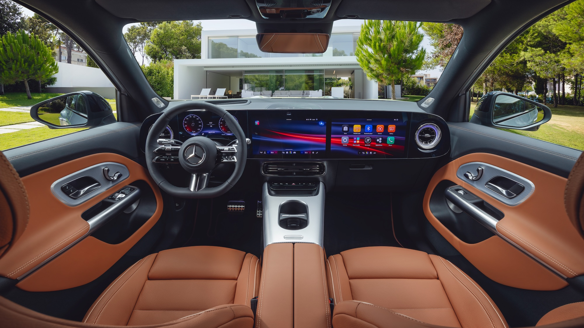 Mercedes tasarım ekibi, GLB’nin kabinini modern çizgilerle yeniden şekillendirdi. Bu kapsamda genişliği boyunca uzanan MBUX Superscreen tasarımı devreye alındı. Ayrıca havalandırma kanalları daha sportif bir görünüme kavuştu, yeni orta konsol kablosuz şarj alanıyla birlikte daha kullanışlı bir yapıya büründü.
