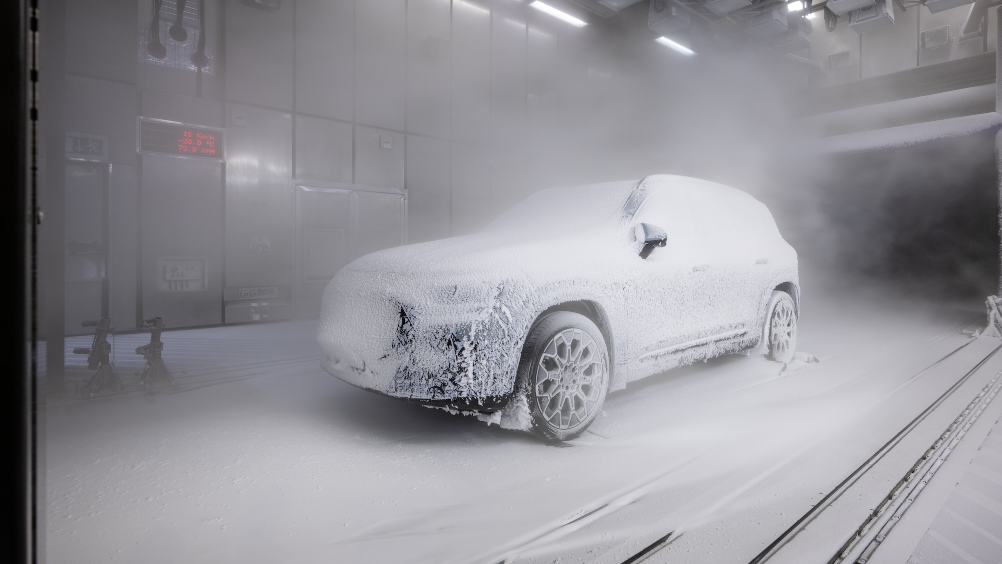 Mühendisler, GLB’yi Sindelfingen’deki iklim tünellerinde kapsamlı bir şekilde inceledi. İlk olarak sıcaklığı -40°C ile +40°C arasında değiştirerek GLB’nin ısı yönetimi tepkilerini ölçtüler. Ardından kar makineleriyle 200 km/s hızında tipi oluşturarak aracın görüş ve çekiş dengesi üzerinde çalıştılar. Bununla birlikte ekip, ön camdaki buzlanmayı çözme hızını kaydetti ve 4MATIC sistemini kaygan zeminde defalarca sınadı.